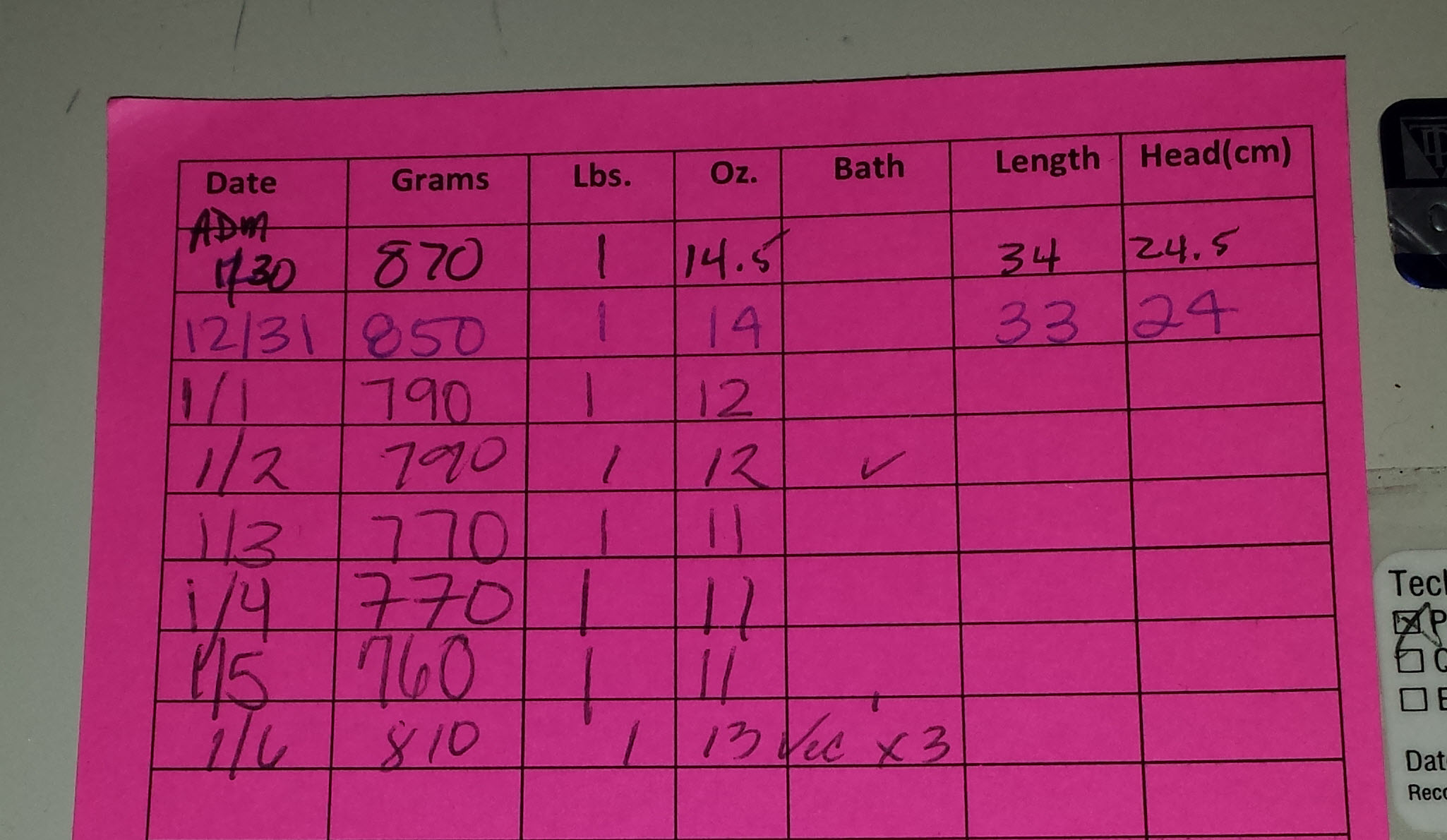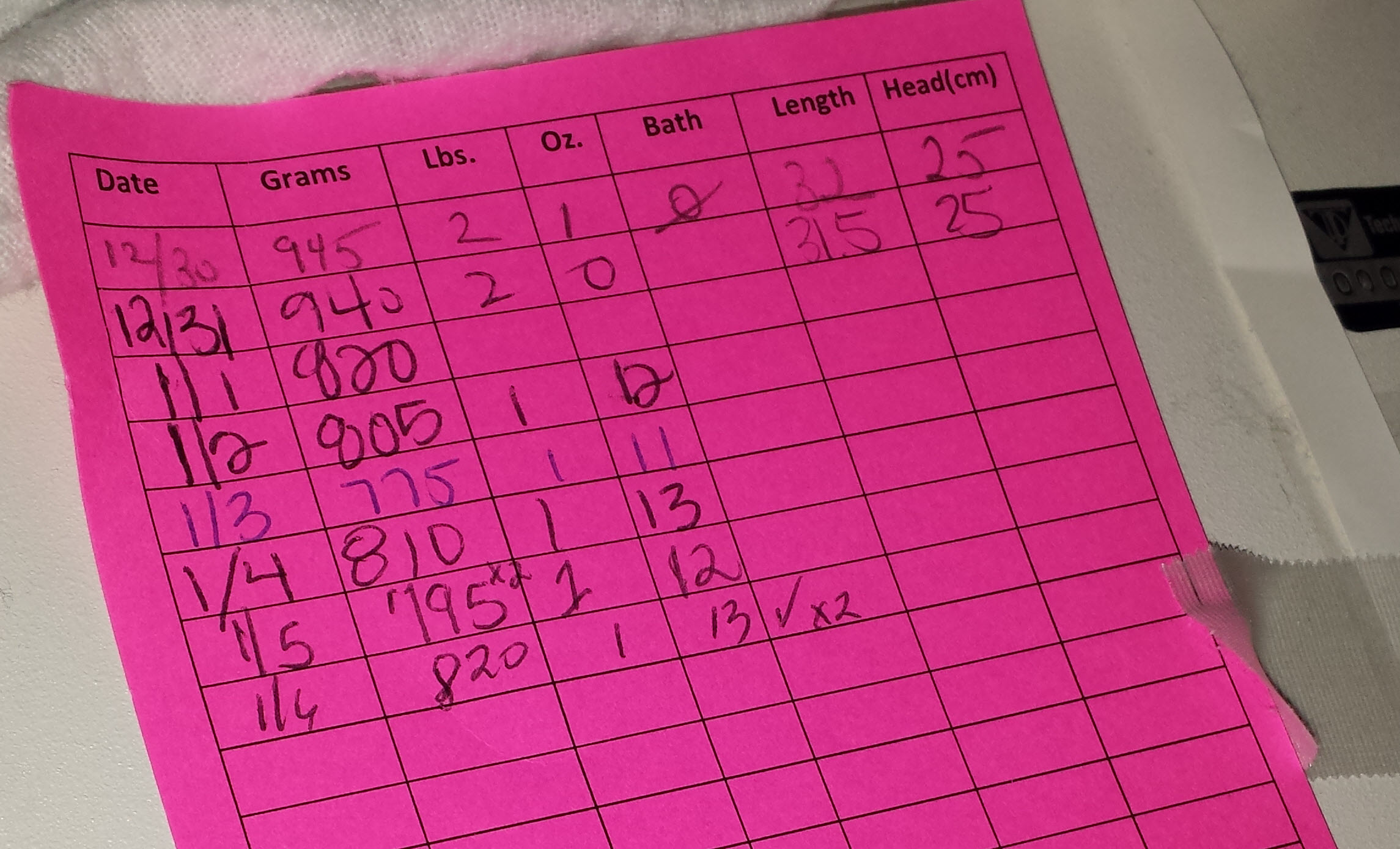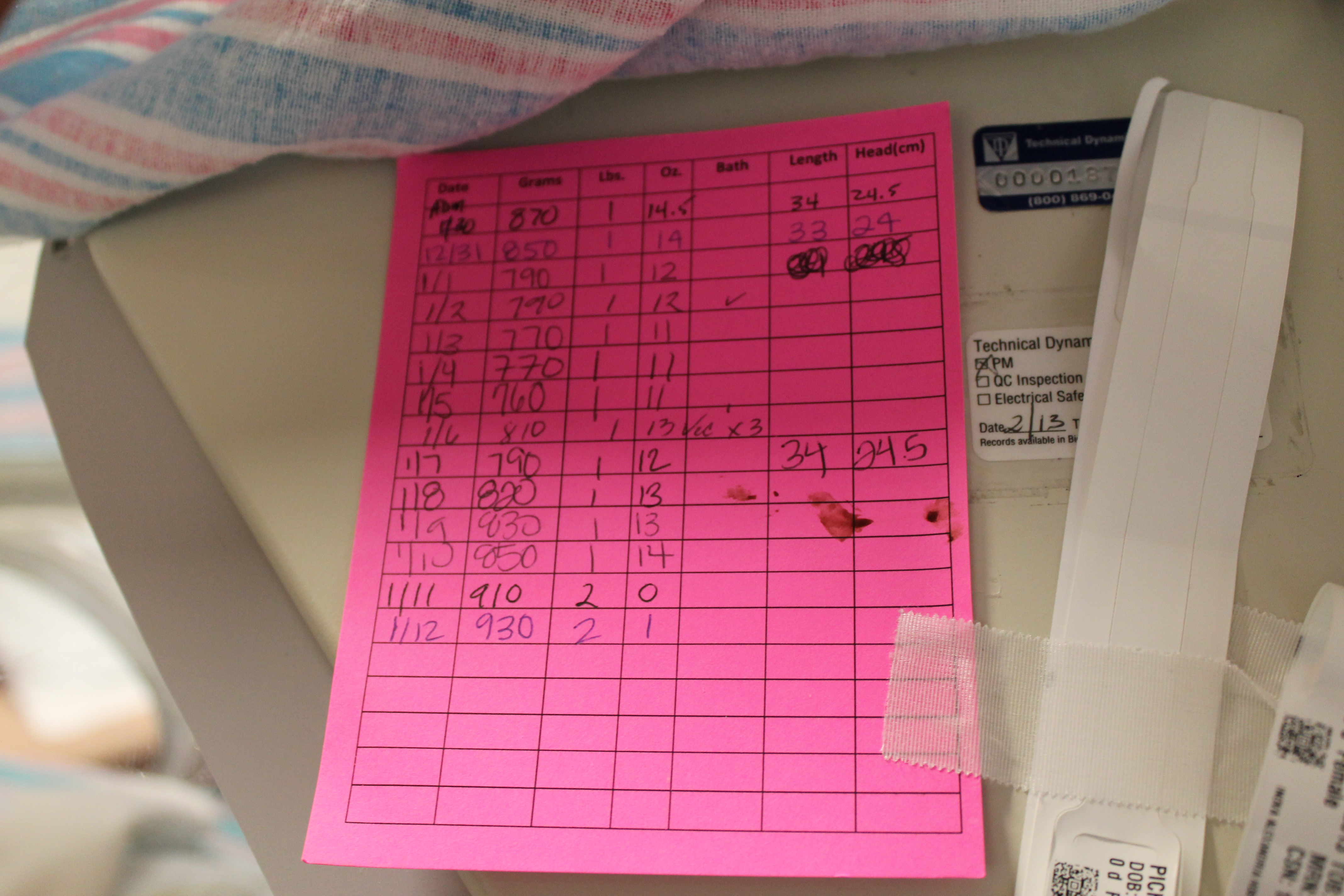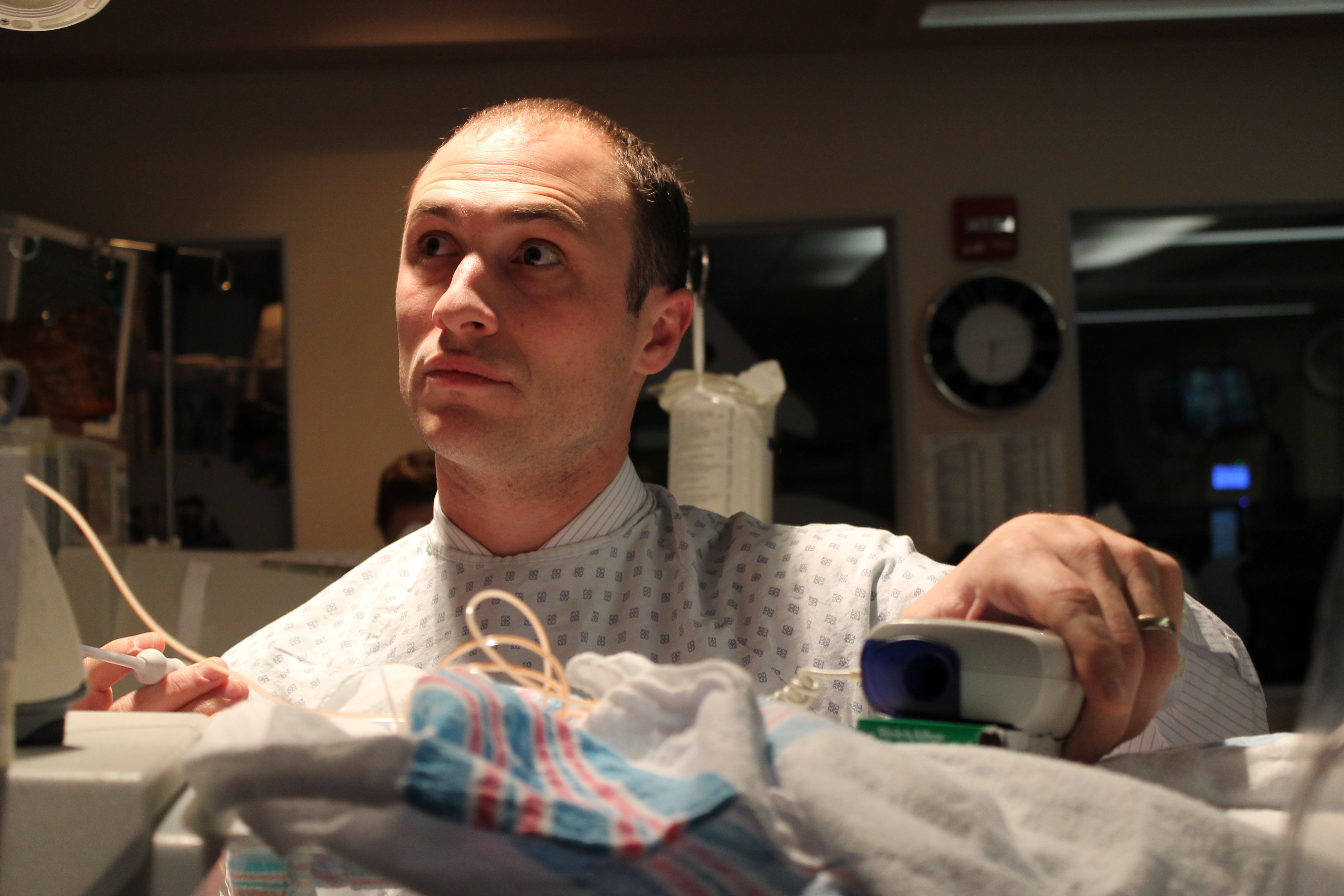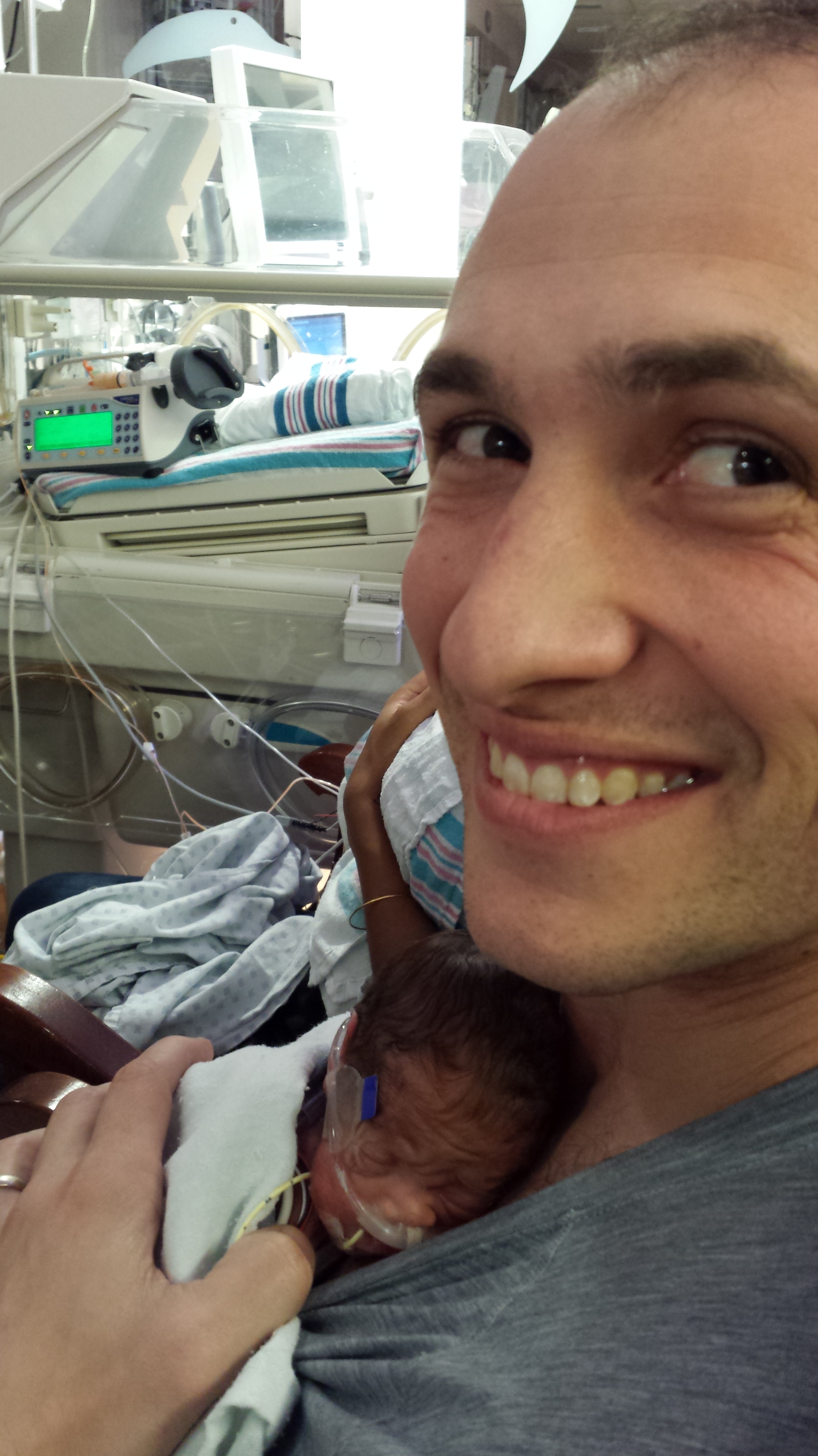 The scariest ‘normal’ issues, however, are the occurrences of apnea and bradycardia Max and Michaela both endure as they learn to breathe on their own. Premature babies’ central nervous systems are not mature enough to support continuous breathing, so they’ll periodically go through either short periods of shallow breath or stop breathing altogether (apnea). If the apnea lasts long enough, it will cause their heart rates to drop rapidly (bradycardia). Sometimes they’ll be able to recover from a brady on their own and sometimes they need help in the form of stimulation from us or the nurse. These episodes are considered ‘normal’ and are not recorded unless they last for more than 20 seconds. Thankfully neither baby has had very many episodes that last long enough to be recorded, but we’ve never experienced a longer 10 to 15 seconds than the 10 to 15 seconds where one of them is not breathing.