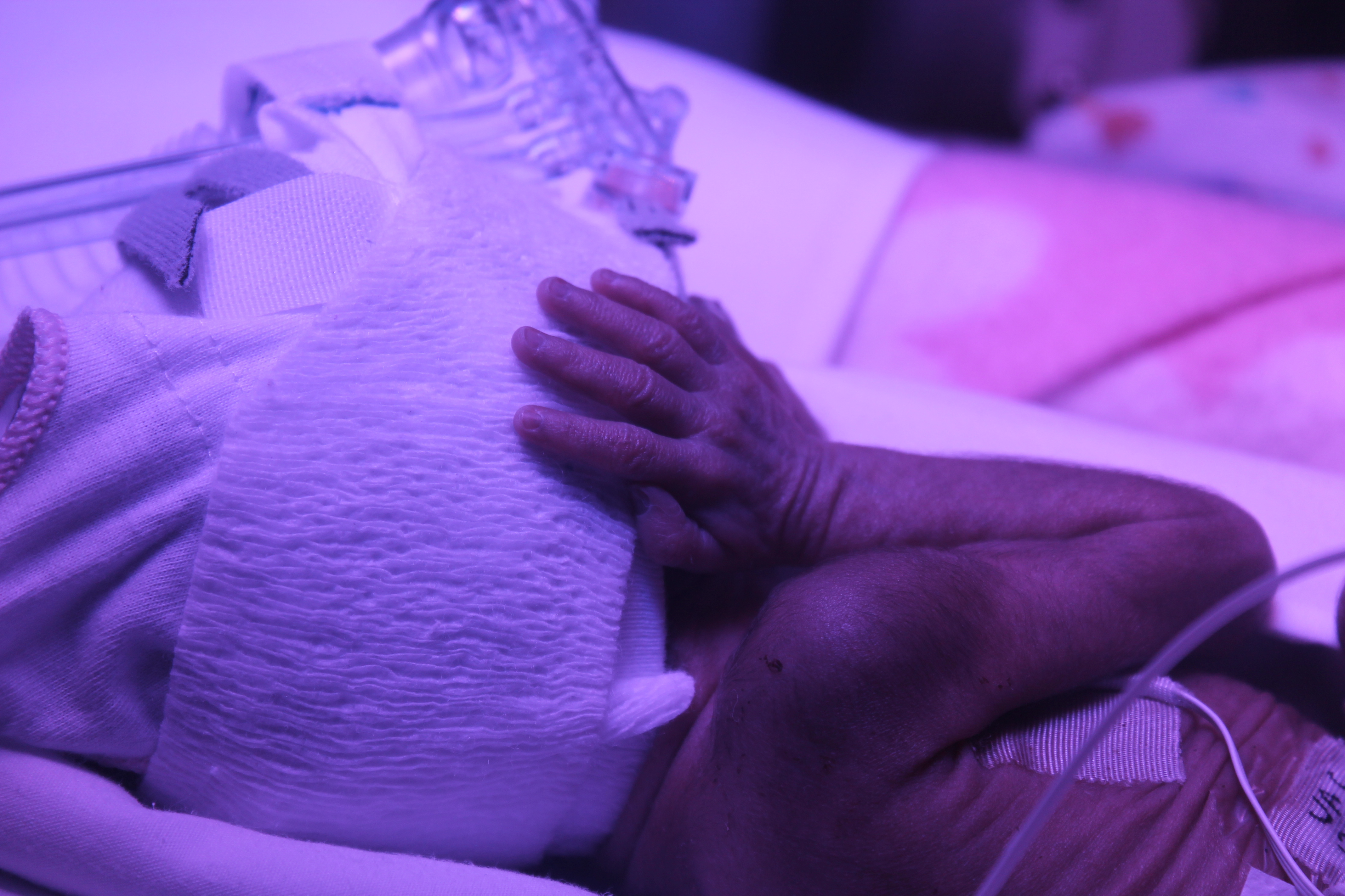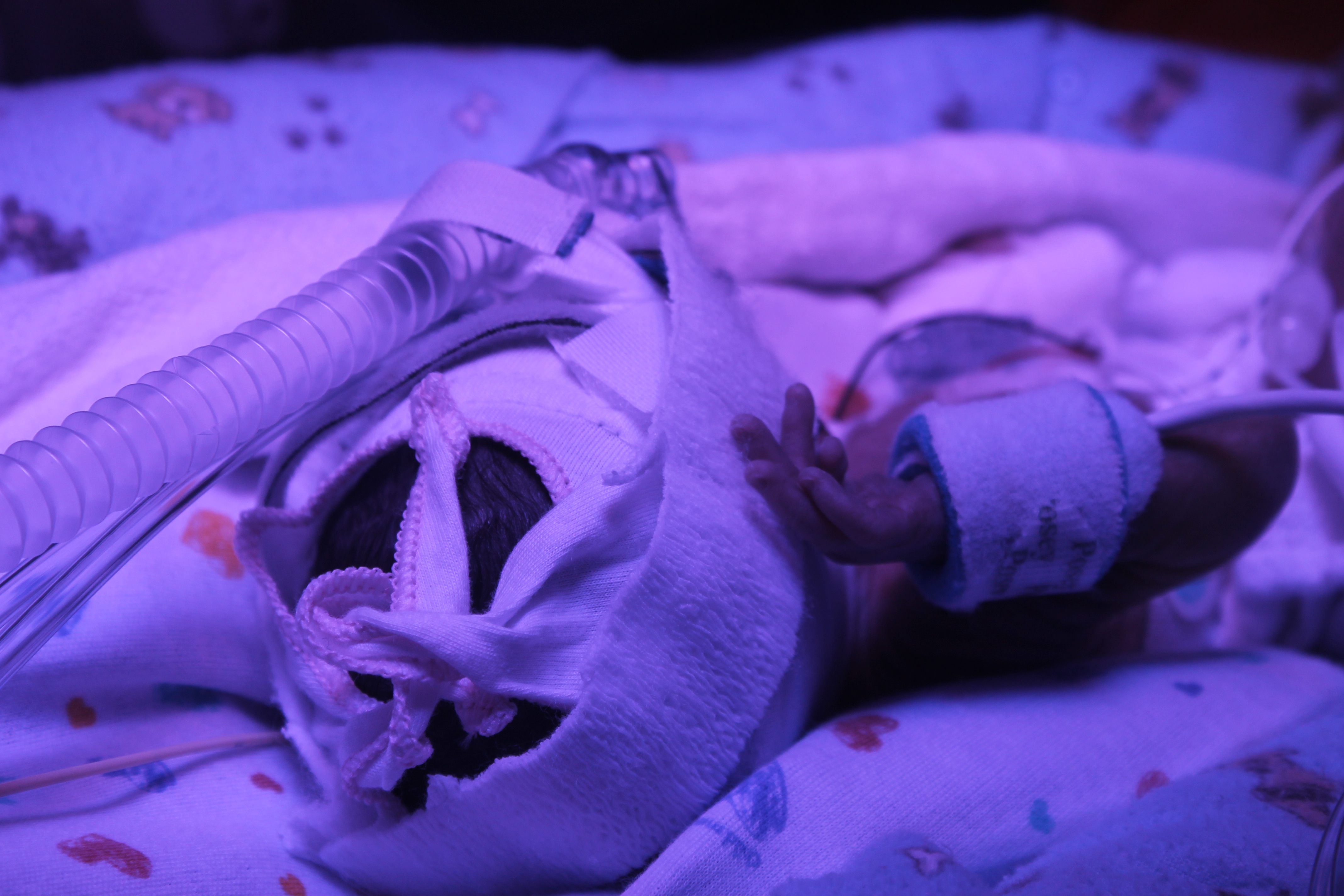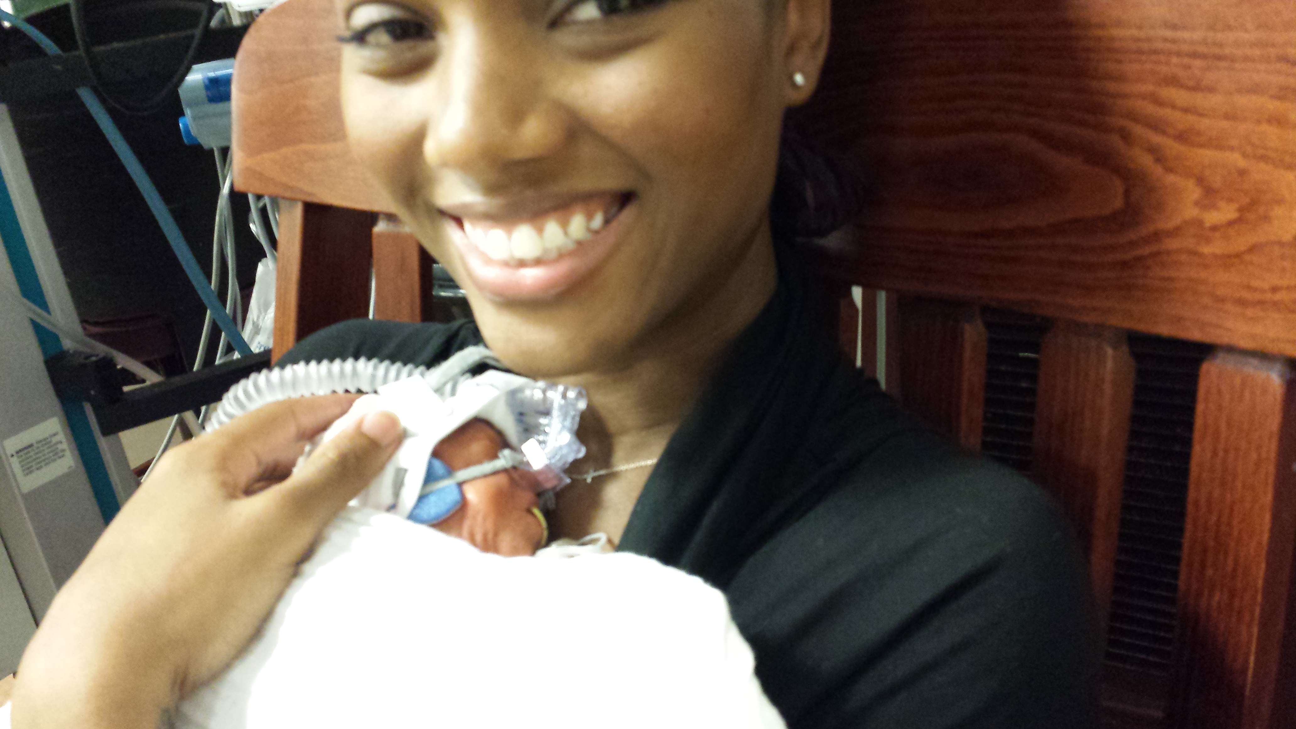 Despite their amazing progress, it’s still a bit difficult for us to get used to the ‘normal’ or ‘typical’ hiccups that premature babies have to work through. Michaela is still receiving continuous positive airway pressure (CPAP). Although she is no longer on a full ventilator and can breathe room air, CPAP ensures that her not fully developed lungs expand properly with each breath. This requires that she wears a (very uncomfortable) mask at all times – ‘typical’ for babies at this stage.